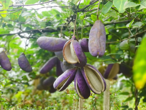 现如今,走进金寨县燕子河镇杨树村八月瓜种植基地,一个个硕大饱满的果实悬于枝叶间,形似芒果,颜色不一。成熟的果实果皮裂开,露出了乳白色的果肉,阵阵果香沁人心脾,让人垂涎欲滴。八月瓜是一种营养价值非常丰富的瓜果,含有12种氨基酸以及人体不能合成的氨酸、蛋氨酸、异亮氨酸、赖氨酸等。八月瓜具有理气、活血、杀虫、解毒、利尿、止痛、疏肝益肾、健脾和胃的功效,对于治疗肝胃气痛、消化不良、心烦意乱、腹痛腹泻、膀胱疝气、腰痛、痛经等症状具有很好的效果。
